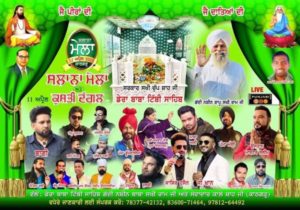 डेरा पीर बाबा टिब्बी साहिब जी काठगढ़ तहसील बलाचौर जिला शहीद भगत सिंह नगर में गद्दी नशीन बाबा सखी राम जी और समूह साध संगत द्वारा वार्षिक मेला और कुश्ती दंगल का आयोजन किया जा रहा है। जहां 11 अप्रैल 2024 को विशाल कुश्ती दंगल होगा.