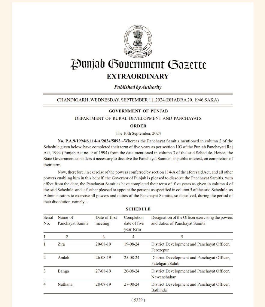 पंजाब में पंचायत समितियां भंग ताज़ा खबरेंपंजाबराज्य By सुखजीत भाटिया On Sep 13, 2024 0 63 Share अब डीडीपीओ देखेंगे पंचायत का काम 153 पंचायत समितियों में से 76 भंग कर दी हैं पंजाब सरकार ने जारी किया नोटिफिकेशन जारी पंजाब में 13,000 ग्राम पंचायतों को पहले ही भंग किया जा चुका 0 63 Share FacebookTwitterReddItWhatsAppPinterestEmail